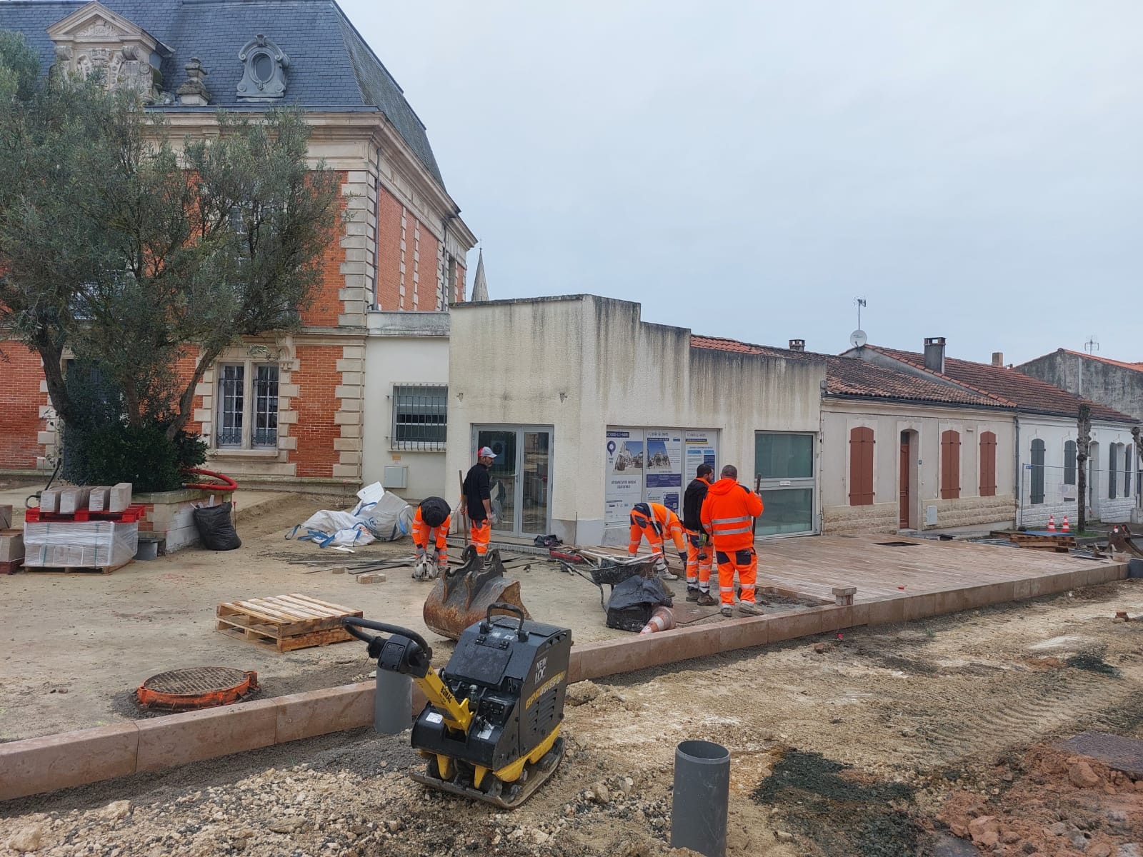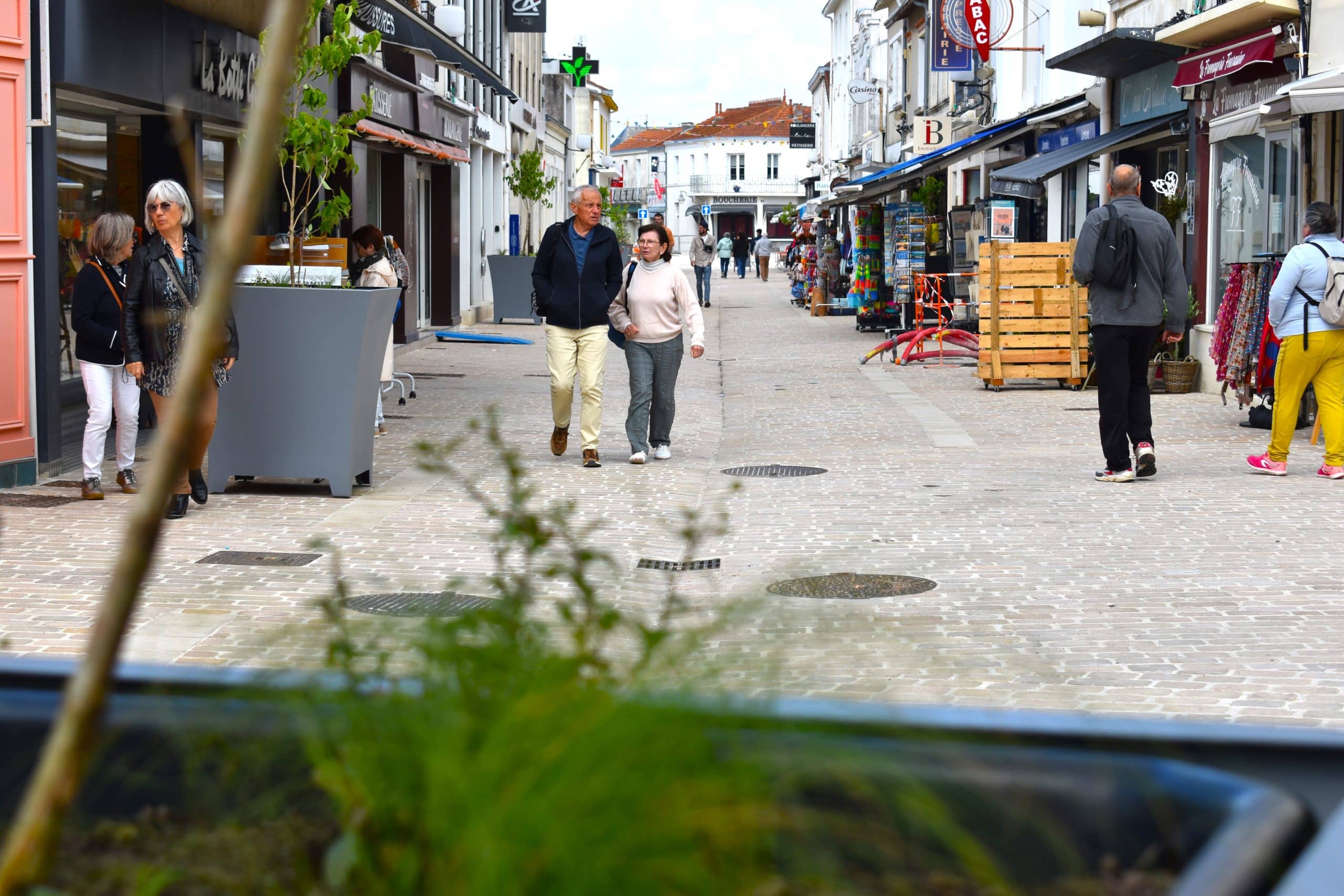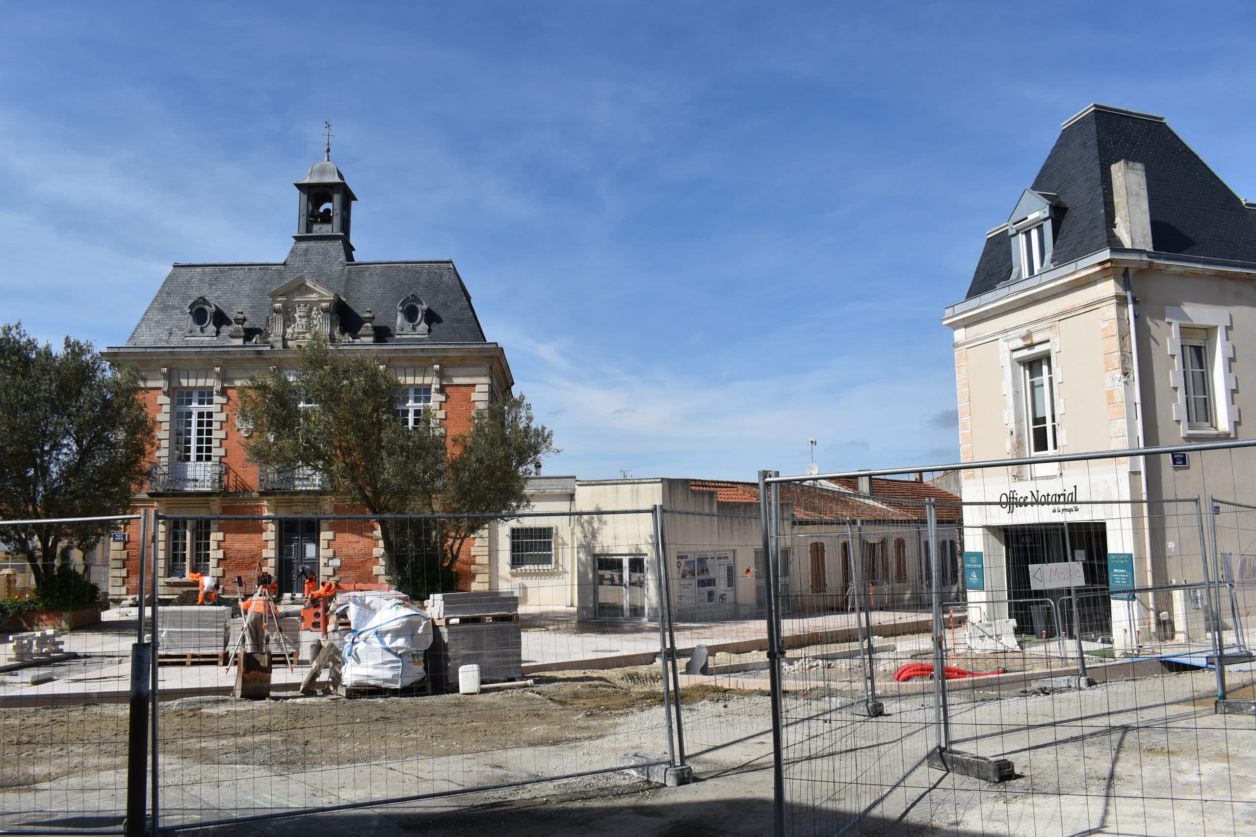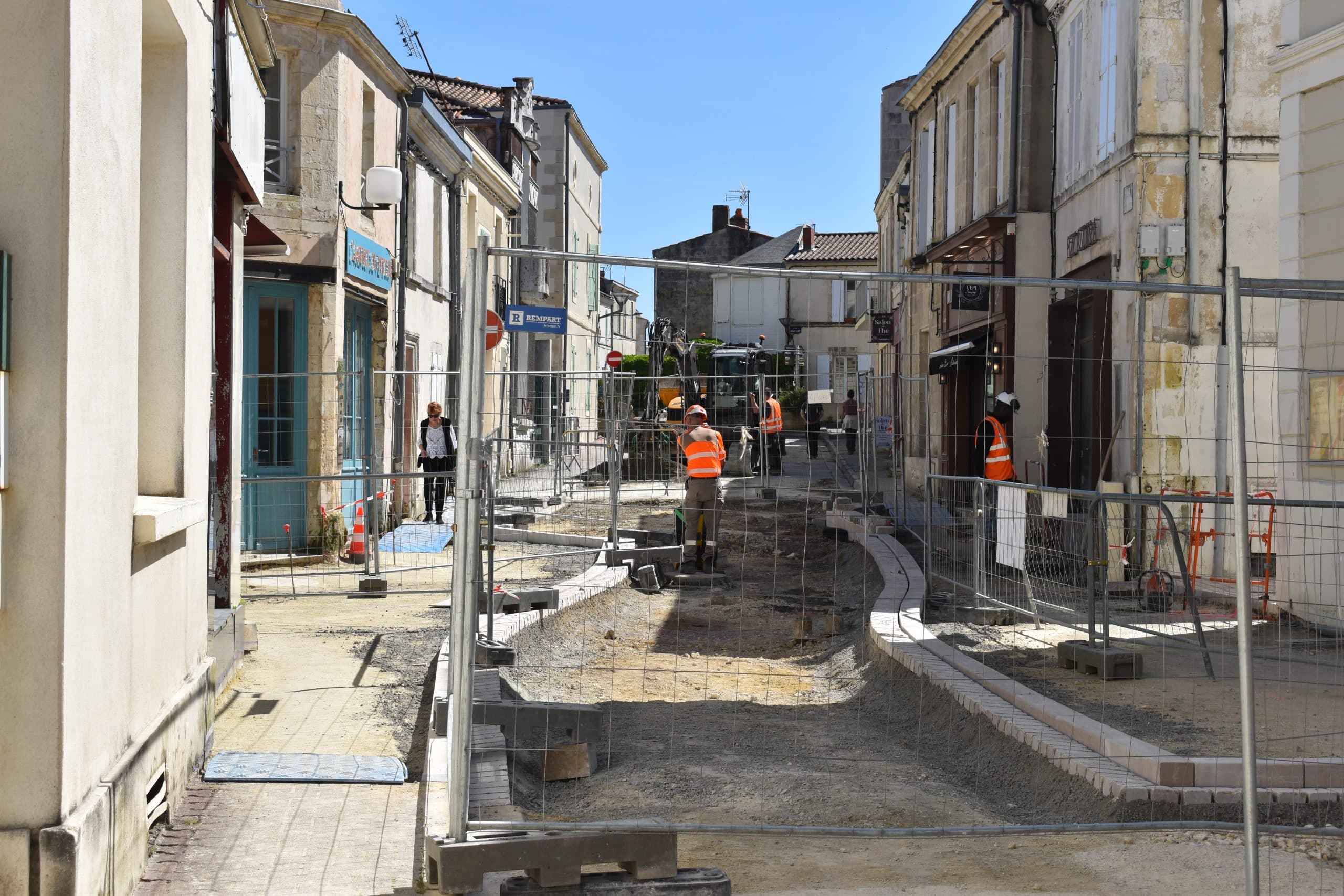 Depuis trois décennies, les pavés autobloquants de la rue de la Halle ont été témoins de nos déambulations, de nos échanges entre voisins et amis, ainsi que de moments agréables passés aux terrasses. Cependant, notre rue commerçante et la place de la mairie montraient des signes de vieillissement. Finis les pavés rouges, place aux pavés en pierre naturelle calcaire provenant des carrières du Poitou-Charentes. Ce matériau noble a été choisi pour sa qualité et son esthétisme, offrant une surface non glissante propice à une déambulation sécurisée.
